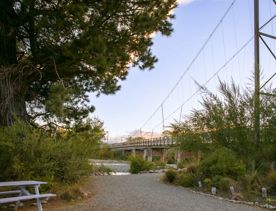 The main highlight of this trail is the Tauwharenīkau Suspension Bridge — a 150-metre-long structure spanning the Tauwharenīkau River. The bridge is one of the longest cycle path suspension bridges in the country. Located in a high wind zone and braced to a large rail bridge, it posed real challenges for design and construction.